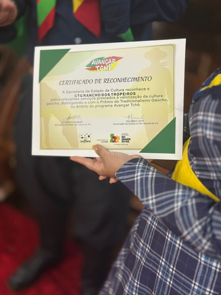 Na ocasião, Boza realizou a entrega simbólica do prêmio à patroa da entidade, Vivian Nunes. O CTG foi contemplado com o valor de R$ 20 mil, recurso que integra o montante de mais de R$ 17,7 milhões destinados pelo programa a entidades tradicionalistas em todo o Estado, com o objetivo de fortalecer, preservar e incentivar a cultura gaúcha.