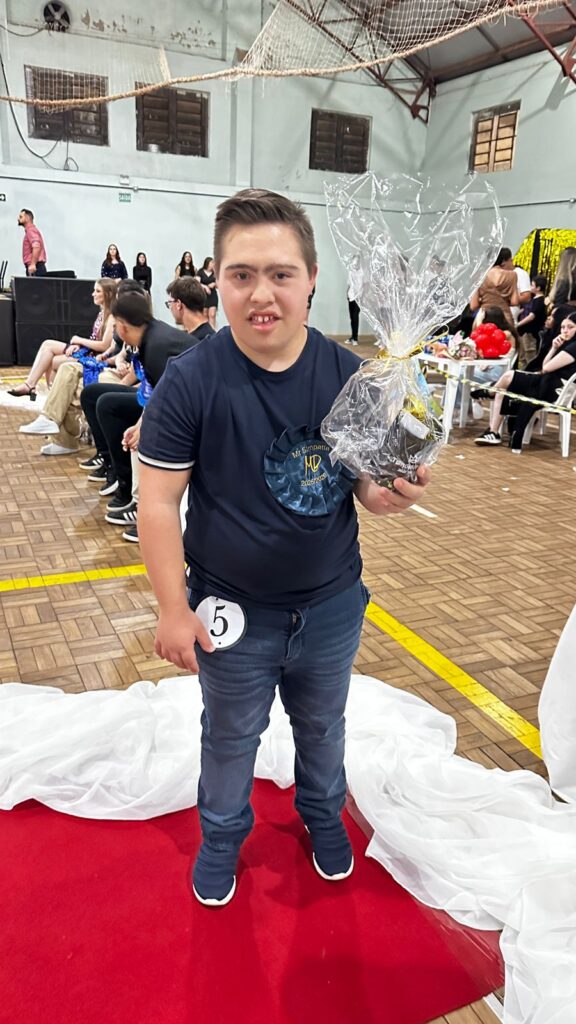 O título de Mister Simpatia foi para Pedro Henrique Annastacio Klein, de 17 anos, aluno da Turma 221, filho de Silvana Annastacio Klein e Clair Clademir Klein. Pedro é portador da Síndrome de Down e é muito querido pelos colegas e professores. Pelo segundo ano consecutivo, conquistou o reconhecimento da comunidade escolar com seu carisma e alegria contagiante. Emocionado, Pedro compartilhou seu sonho simples e inspirador: “Para muitos pode significar pouco, mas meu sonho é dirigir um caminhão.” E deixou uma mensagem que tocou a todos: “Quero que no futuro eu seja um exemplo de que a vida é mais leve e feliz quando aprendemos a aceitar e valorizar as diferenças.”