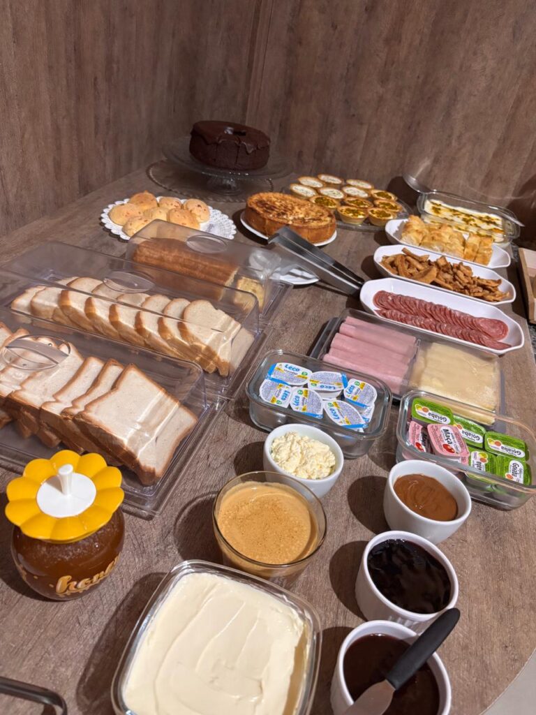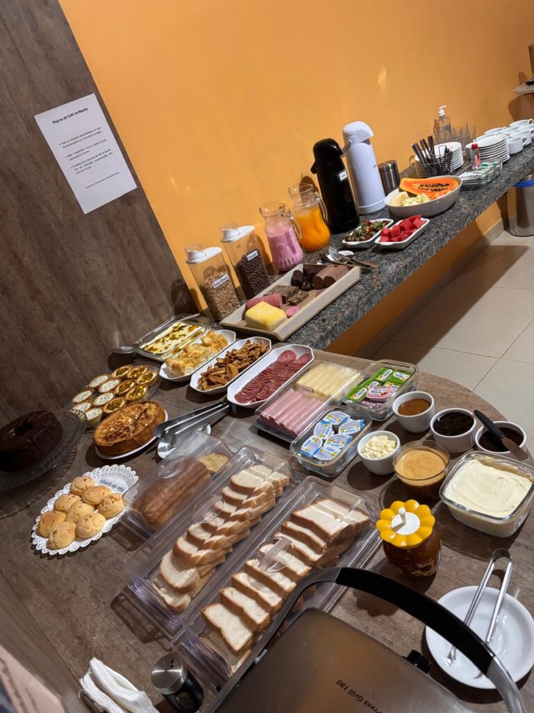 Um dos grandes diferenciais é o café da manhã servido no estilo café colonial, preparado com variedade e qualidade, reunindo opções que agradam aos mais diversos paladares e proporcionando uma recepção calorosa logo nas primeiras horas do dia. O cuidado com a apresentação e o frescor dos alimentos reforça a proposta de acolhimento que se tornou marca registrada do hotel.