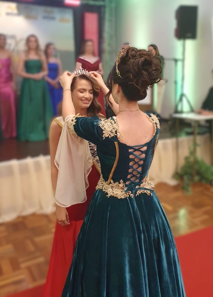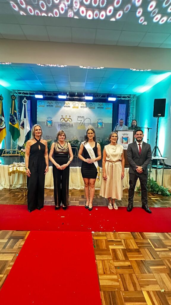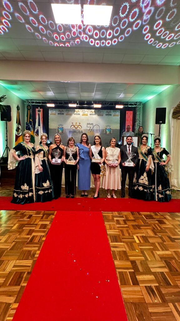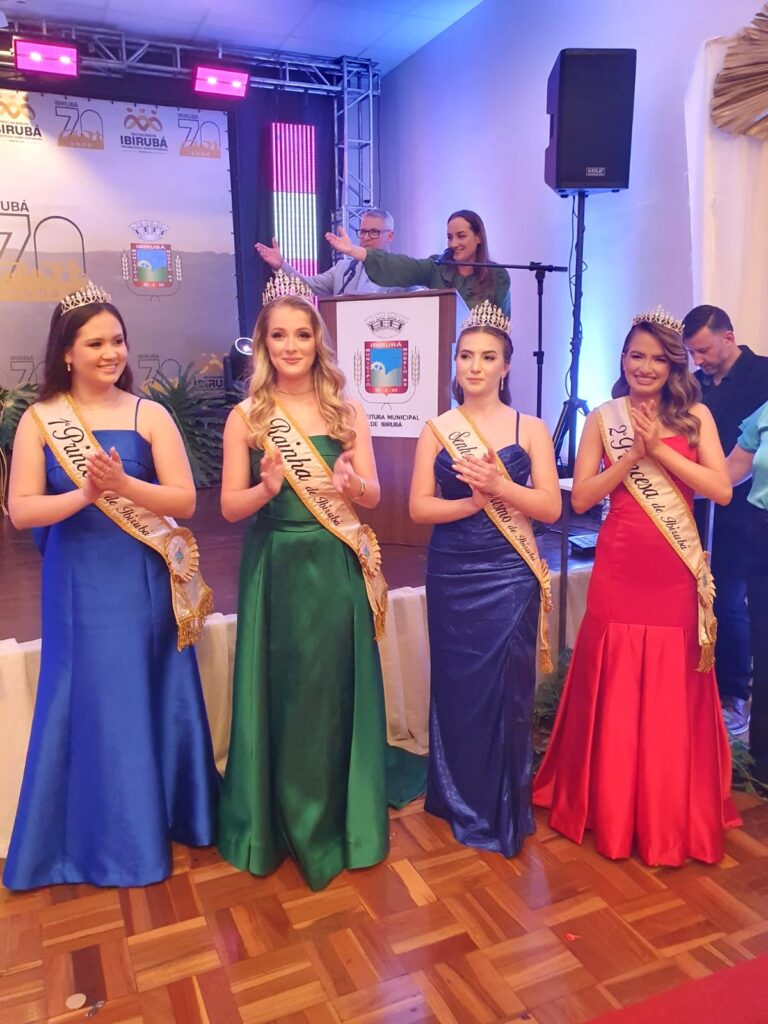 Após uma criteriosa avaliação, foi anunciada a nova corte de Ibirubá: Júlia Vitória Fetzner Pasqualotto, de 21 anos, foi coroada rainha; Milena Alves Oliveira, de 18 anos, ficou com o título de segunda princesa; e Maria Eduarda Garmatz-Lopes, de 17 anos, foi nomeada primeira princesa. Raísa Thais Rebelato, também de 17 anos, foi eleita a Senhorita Turismo de Ibirubá. As novas soberanas terão a importante missão de representar as mulheres ibirubenses em diversos eventos regionais, contando com o apoio de uma corte de jurados composta por autoridades e personalidades locais. Parabéns às eleitas!