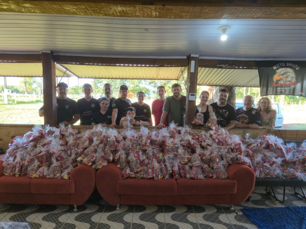 Neste ano, o projeto foi ampliado. Parte dos recursos arrecadados durante um encontro gratuito de motos — com lucro obtido exclusivamente pela venda de bebidas — está sendo revertida integralmente à comunidade. Ao todo, serão distribuídos 458 pacotes de doces, número superior ao do ano anterior. A entrega acontece no próximo domingo, com saída às 17h da sede do grupo, percorrendo os bairros Hermany, Progresso, Aparecida, Santa Helena, Unida, Chácara da Prefeitura e Floresta. O grupo que hoje conta com 43 integrantes, pretende tornar o Natal Solidário uma ação permanente, além de desenvolver outras iniciativas sociais ao longo do ano. Parabéns a todos os integrantes pela bela ação!
