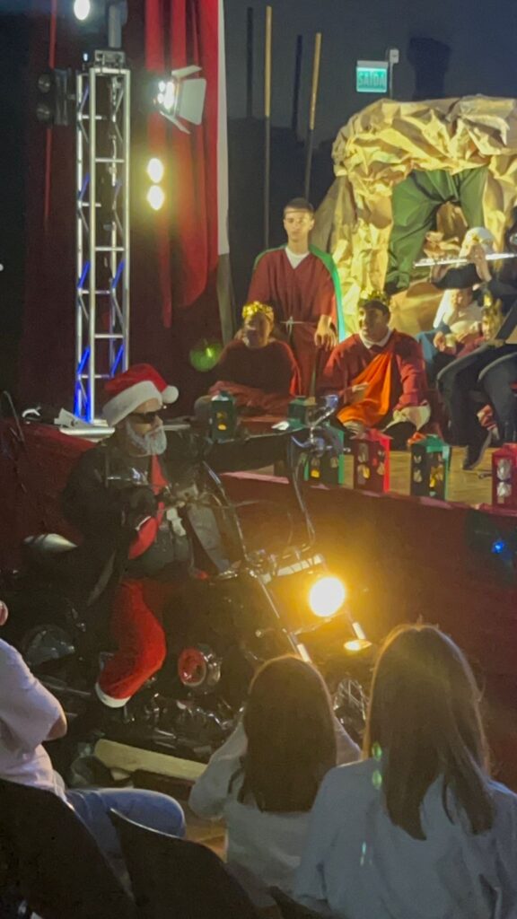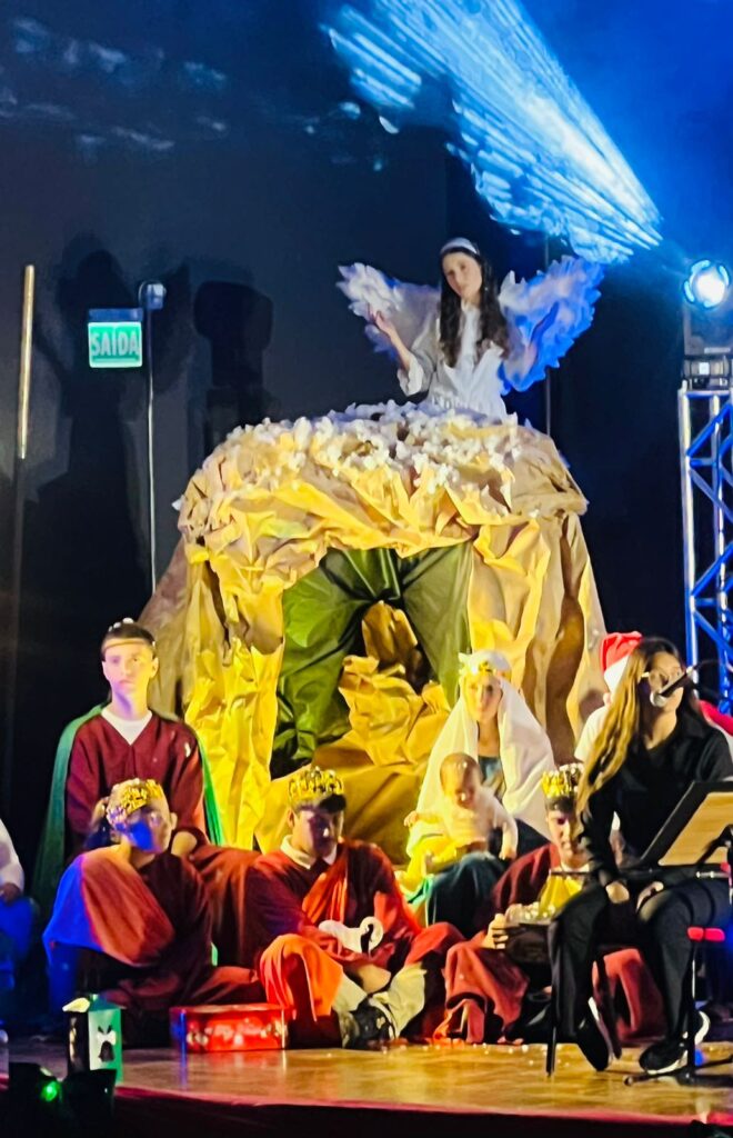 A noite também reservou momentos diferenciados, como a chegada do Papai Noel motoqueiro, que surpreendeu e divertiu as crianças, e o presépio vivo, que emocionou o público ao retratar simbolicamente o nascimento de Jesus.