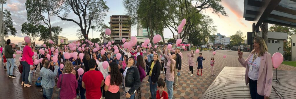 Entre abraços, música, movimento e sorrisos, a cidade se vestiu de rosa para celebrar a força de quem luta e a importância da prevenção.